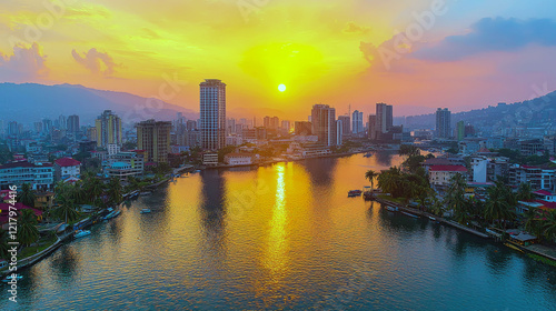 Malabo, Equatorial Guinea: Stunning Aerial View of Cityscape at Sunset