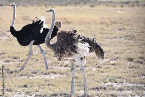 Male and female ostrich at Etosha National Park, Namibia