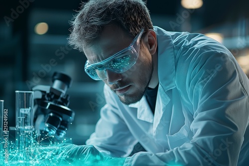 Male Scientist in Laboratory Analyzing Data with Innovative Technology and Equipment in High-Tech Environment