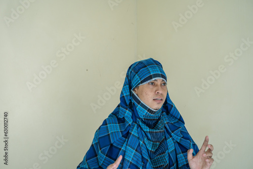 Man act like thief surprised looking and awareness. The photo is suitable to use for thief content media, police poster and security background.