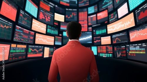 Man Analyzing Stock Market Data on Multiple Screens, Investment , Trading
