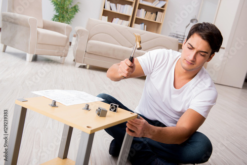 Man assembling shelf at home