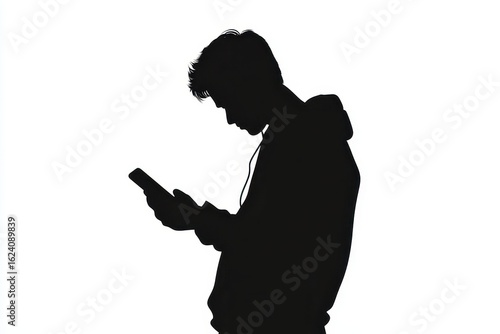 Man checking phone icon vector illustration isoleted on white background in black silhouette complex photo .