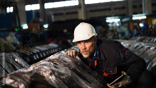 Man engineer standing on construction site or equipment maintenance work site.