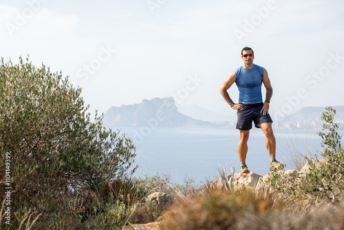Man Enjoying Scenic Mountain View by the Sea in Summer