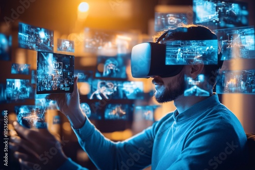 Man Exploring the Digital World with VR Headset and Tablet