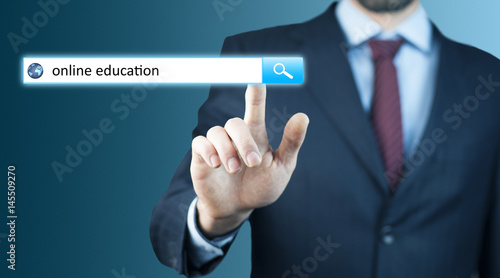 man hand touching online education text