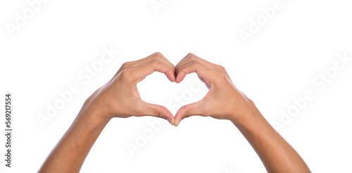 Man hands making a heart shape on a white isolated background