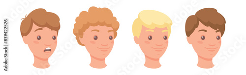 Man Head Showing Face Expression and Emotion Front Vector Set
