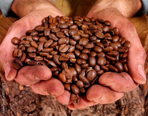 MAN HOLDING COFFEE BEANS.