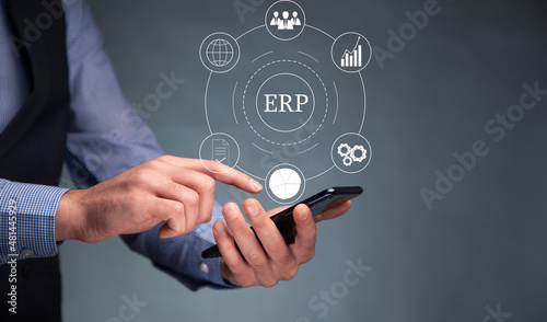 man holding smartphone with ERP