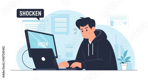 Man In Hoodie Confronting Technical Issue With Laptop Computer Device