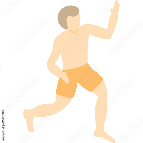 Man In Orange Swim Trunks With Tan Skin And Light Brown Hair In Dynamic Pose On Transparent Background.
