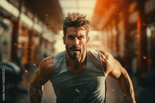 Man in the midst of a dynamic cardio workout session - Heart-pumping hustle - AI Generated