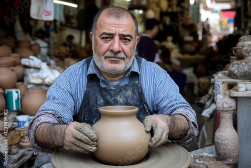 Man is making a pottery vase