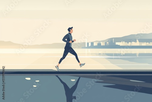 Man jogging vector flat minimalistic isolated illustration, Minimalistic vector illustration of a man jogging, depicted in a flat design style against a plain background