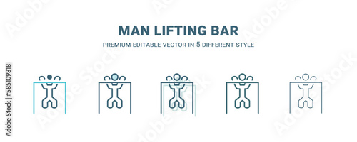 man lifting bar icon in 5 different style. Outline, filled, two color, thin man lifting bar icon isolated on white background. Editable vector can be used web and mobile
