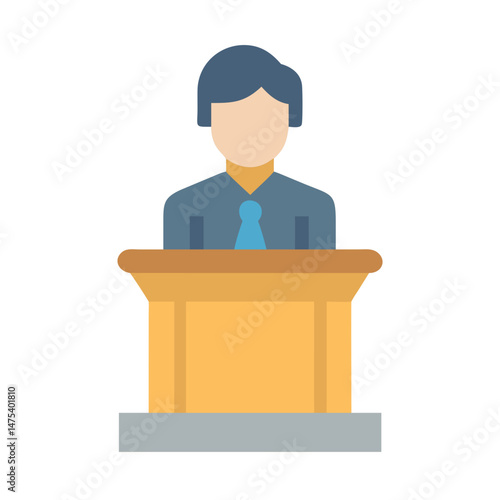 Man on podium speech or presentation vector illustration