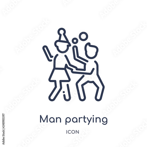 man partying icon from people outline collection. Thin line man partying icon isolated on white background.