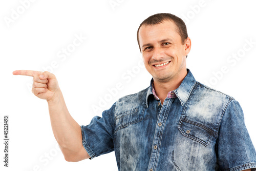 Man pointing to the copyspace
