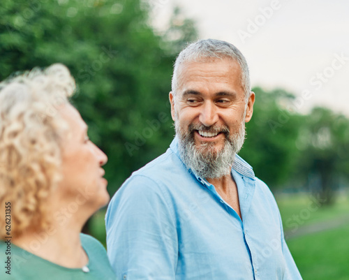 man portrait mature couple happy together active bonding park outdoor middle aged male woman talking leisure park fun smiling love old middle mid aged nature wife walking