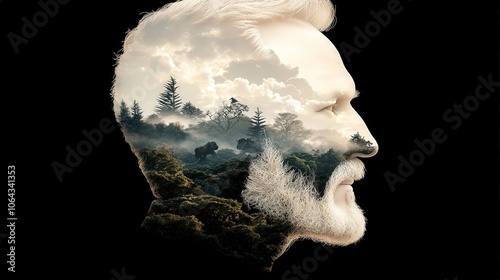 Man Silhouette with Forest and Wildlife Double Exposure Nature Conservation Concept