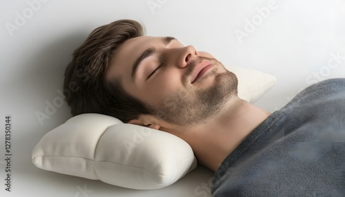 Man sleeping peacefully on a contoured pillow with eyes closed