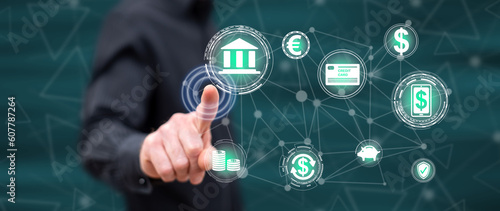 Man touching a mobile banking concept