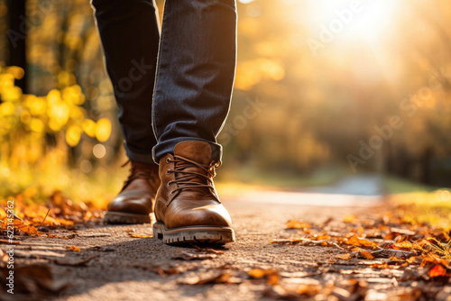 Man walking in autumn park, Generative AI