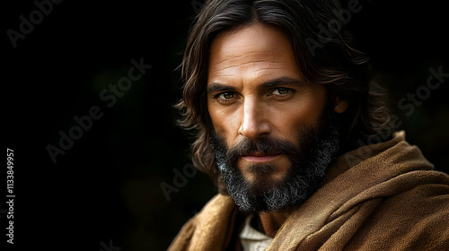 Man with Beard, Deep Gaze, Brown Robe, Intriguing, Mysterious, Spiritual, Calm, Serene, Pensive