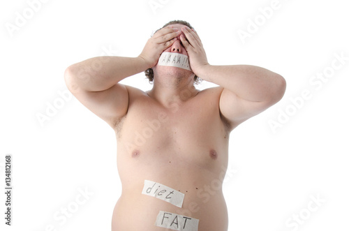 Man with taped mouth on a diet.