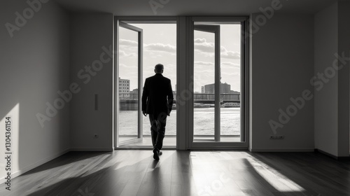 Man with Wisdom Strolls through Open Doors to Bright Future