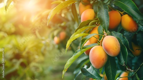 Mango fruit on tree garden nature background
