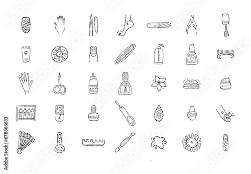 Manicure and pedicure collection. Icons set for your design. Colouring page