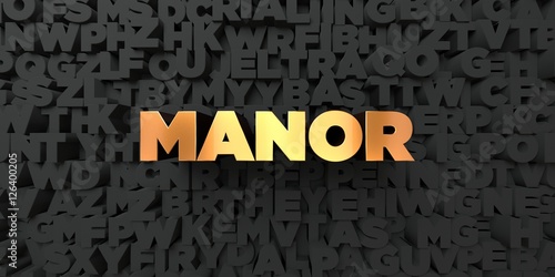 Manor - Gold text on black background - 3D rendered royalty free stock picture. This image can be used for an online website banner ad or a print postcard.