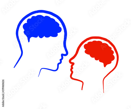 Man's brain and woman's brain on a white background. Symbol. Vector illustration.