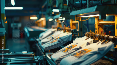 Manufacturing Process of T-Shirts with Printing Machine in Factory