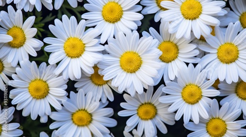 Many daisies closeup, side lighting to show the delicate texture of flowers. Neural network ai generated art