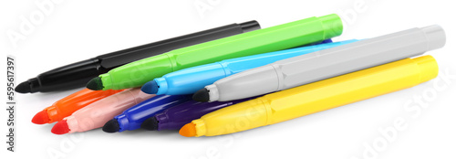 Many different colorful markers on white background