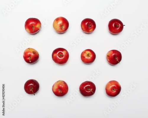 Many different scattered apples isolated on a white background