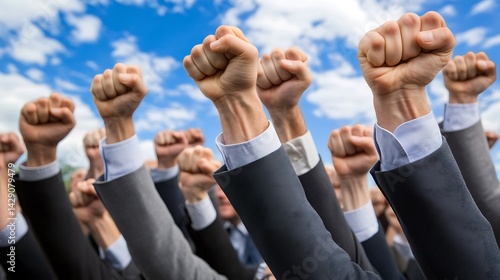 Many fists raised high