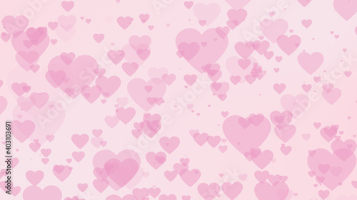 Many half transparent pink hearts slowly falling down and disappearing on bright gradient background. For celebrating Valentine's day dreamy love romantic relationship concept and as backdrop