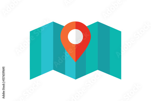 Map Icon Folded Paper Style Vector On White Background
