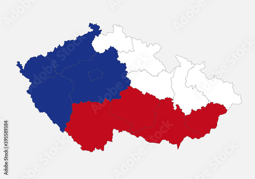Map of the Czech Republic in the colors of the flag with administrative divisions blank