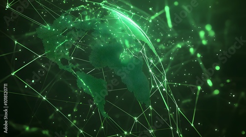 Map of the planet. Global social network. Future. Vector.Green futuristic background with planet Earth. Internet and technology. Floating Green plexus geometric background.