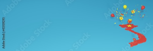 Map of Vietnam combined with flags for social media and website background covers, additions
