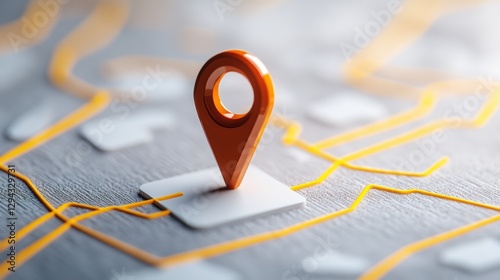 Map pin on a location with yellow lines indicating direction in a minimalist design