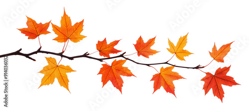 maple leaves autumn tree branch isolated on white transparent background. cut out