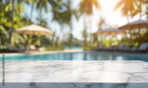 Marble Surface with Tropical Pool Background Perfect for Product Placement