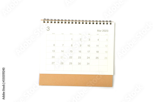 March 2023 calendar page on white background. Calendar background for reminder, business planning, appointment meeting and event.